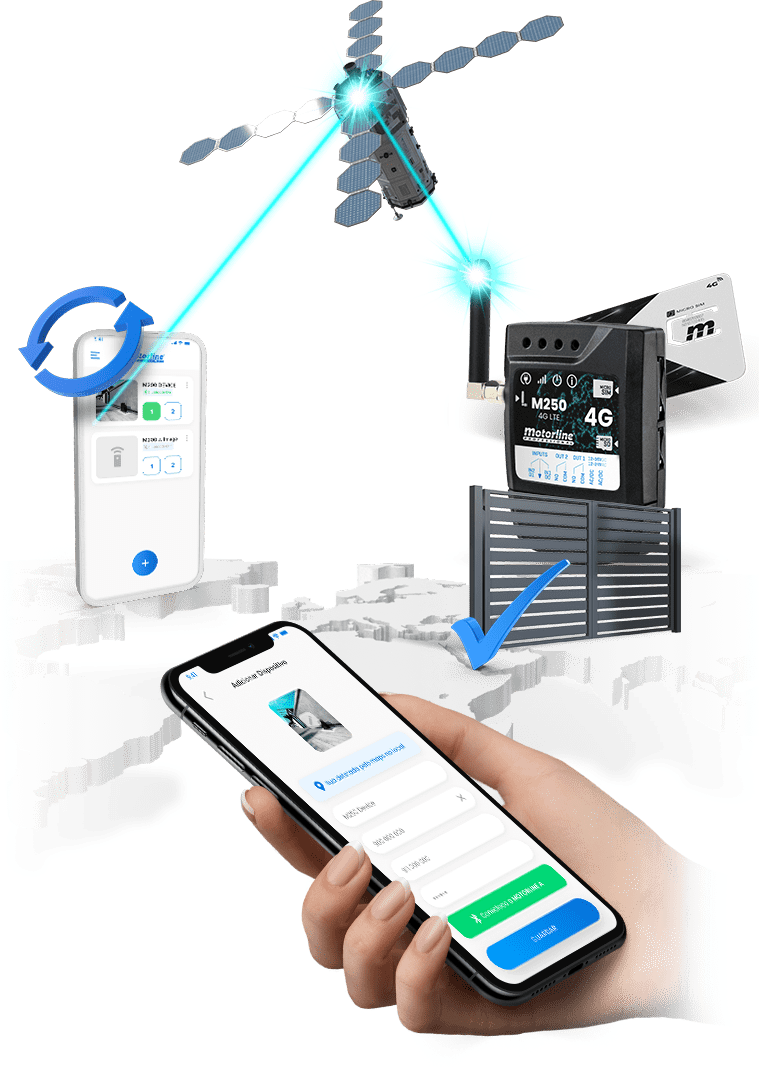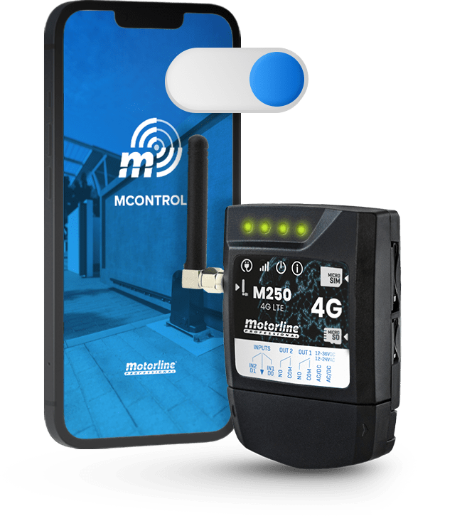 Controllerul Motorline M250 este un modul inteligent de control la distanta, cu GSM 4G si Bluetooth 5.0, ideal pentru automatizari rezidentiale si comerciale. Dispune de 2 relee programabile, suport pentru pana la 1000 de utilizatori, card SIM inclus si functioneaza exclusiv prin aplicatia MCONTROL (Android / iOS).