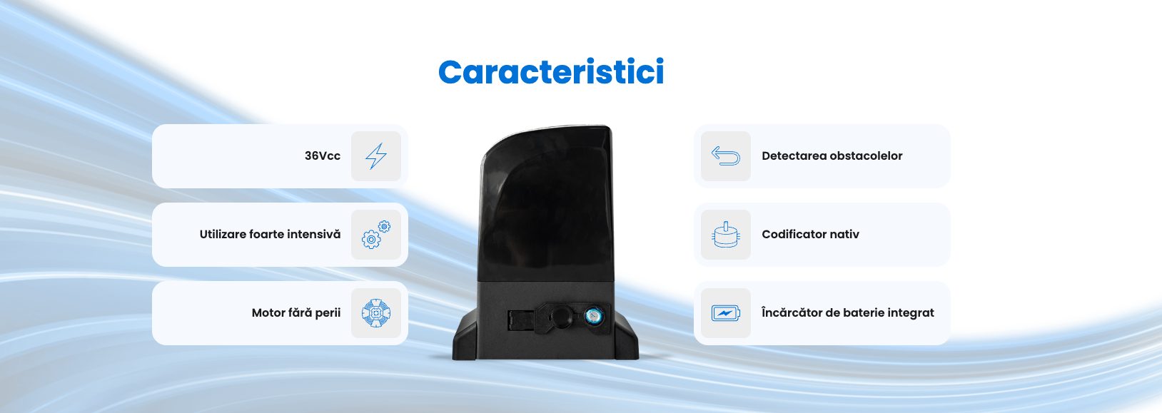 Echipat cu motor fara perii (Brushless DC), ofera o functionare silentioasa, eficienta energetic si o durata de viata extinsa, fiind ideal pentru aplicatii cu trafic intens.