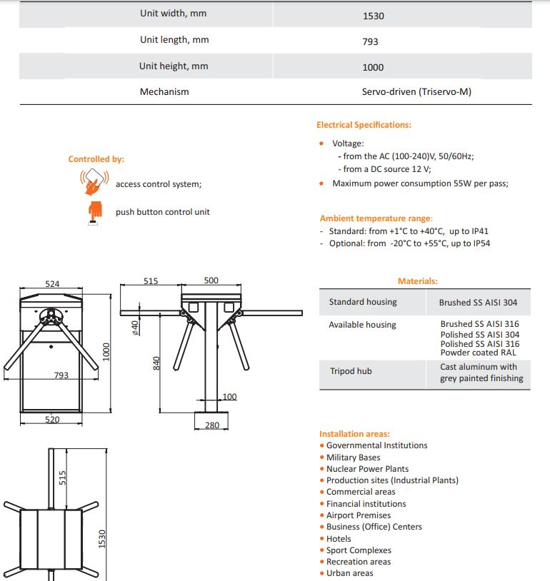 Bastion M Twin este alegerea ideala pentru aeroporturi, campusuri, statii, institutii publice sau cladiri comerciale unde este nevoie de un turnichet tripod dublu, sigur si rezistent.