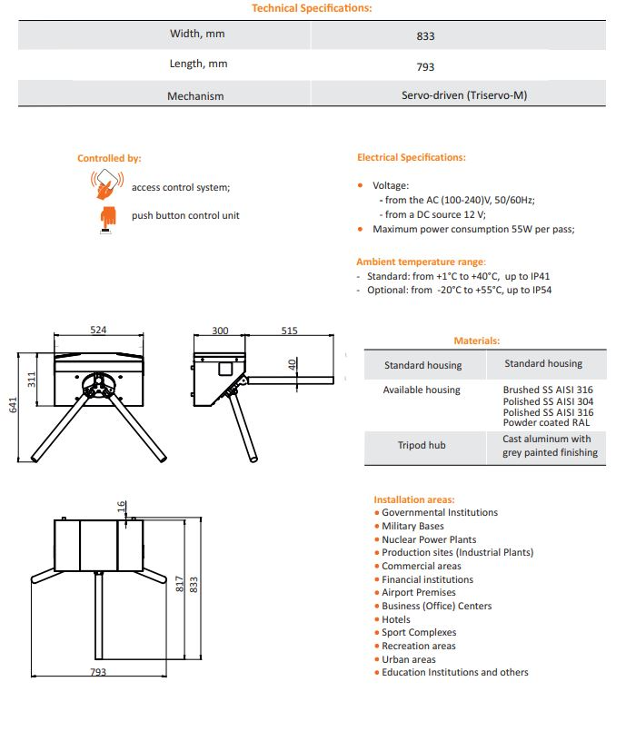 Skull M este alegerea perfecta pentru statii, holuri, birouri si spatii publice, unde este necesar un turnichet tripod compact, sigur si estetic.